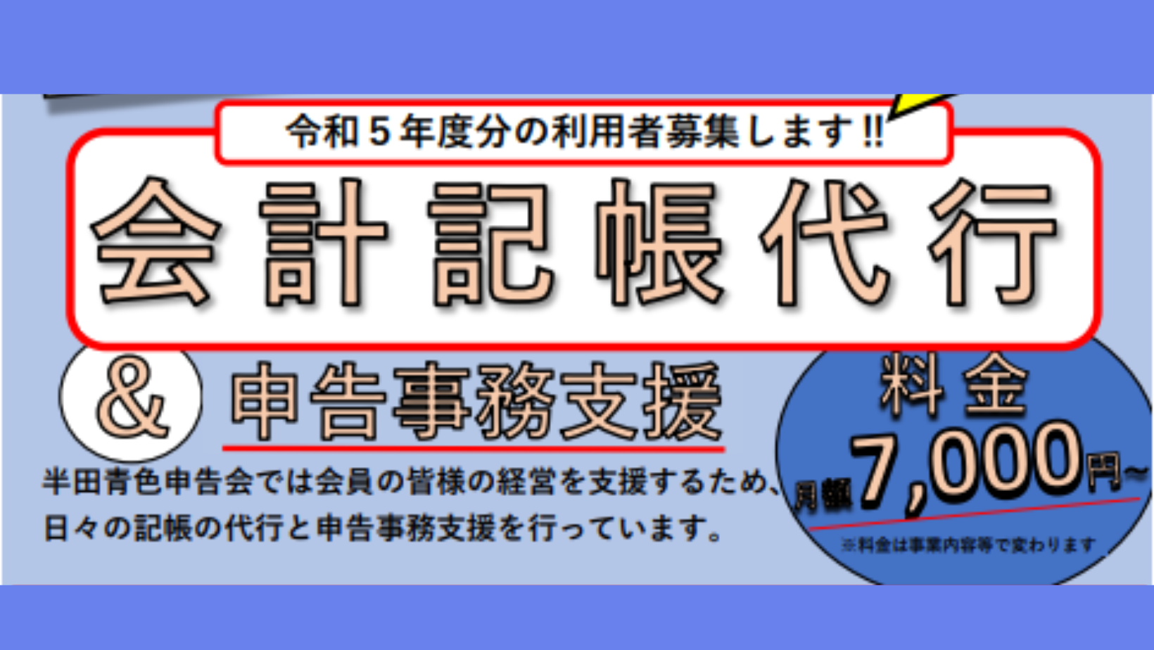 令和5年度「記帳代行」利用者募集のお知らせです。